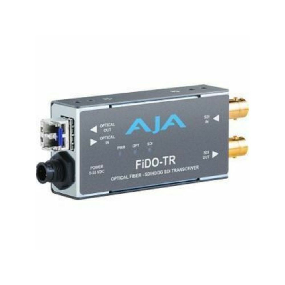 AJA FiDO-TR is a SDI/Optical Fibre Transceiver with output for transport of SDI, HD-SDI and 3G SDI over distances up to 10Km using a standard single-mode fibre optic cable with LC connectors.