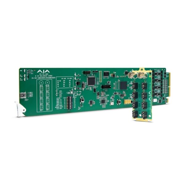 An openGear 8-Channel analog audio embedder/disembedded, OG-3G-AMA supports 3G-SDI input and output up to 1080p 60 and automatically detects and configures to the input video standard. It uses 3-pin terminal block connectors that can be set to perform audio input or output functionality. Analog audio levels and audio embedding/disembedding are selectable, with embedding/disembedding on a channel pair basis to pass 3G-SDI input audio or embed input analog audio from 3-pin terminal block connectors.