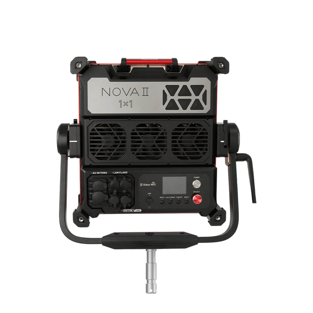The advanced structural design of the NOVA II 1×1 allows it to achieve three goals normally at odds: low noise, low weight, and IP65 weather protection. The NOVA II 1×1 panel is IP65 weather protected, has fan noise below 40dB in high speed mode, and weighs 11.35kg including the yoke.