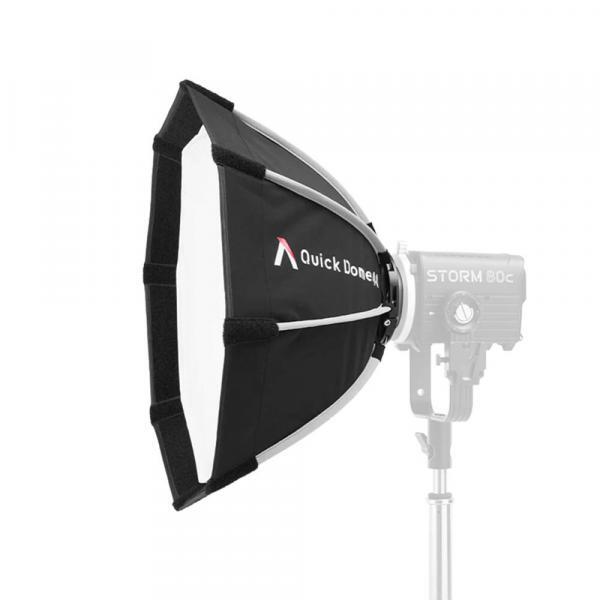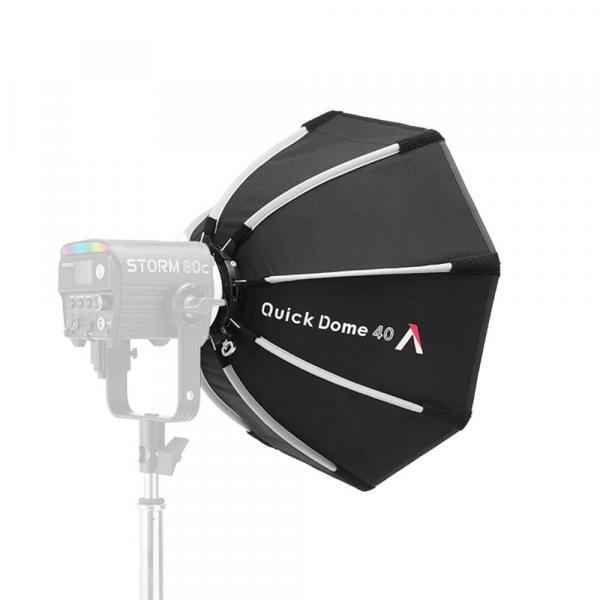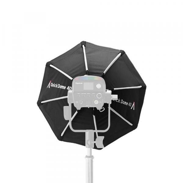 Aputure Quick Dome 40 (6977162455808) is a 40cm (16in) circular Mini ProLock mount softbox built for fast, reliable light shaping on set. Its quick release latch mechanism allows users to tension the steel support rods on the speed ring within seconds, streamlining both setup and teardown. The extended lateral side handle makes mounting and unmounting easy and controllable, and Quick Dome 40 packs flat for storage and transport. Includes 1 and 2-stop diffusion and 40° light control grid.