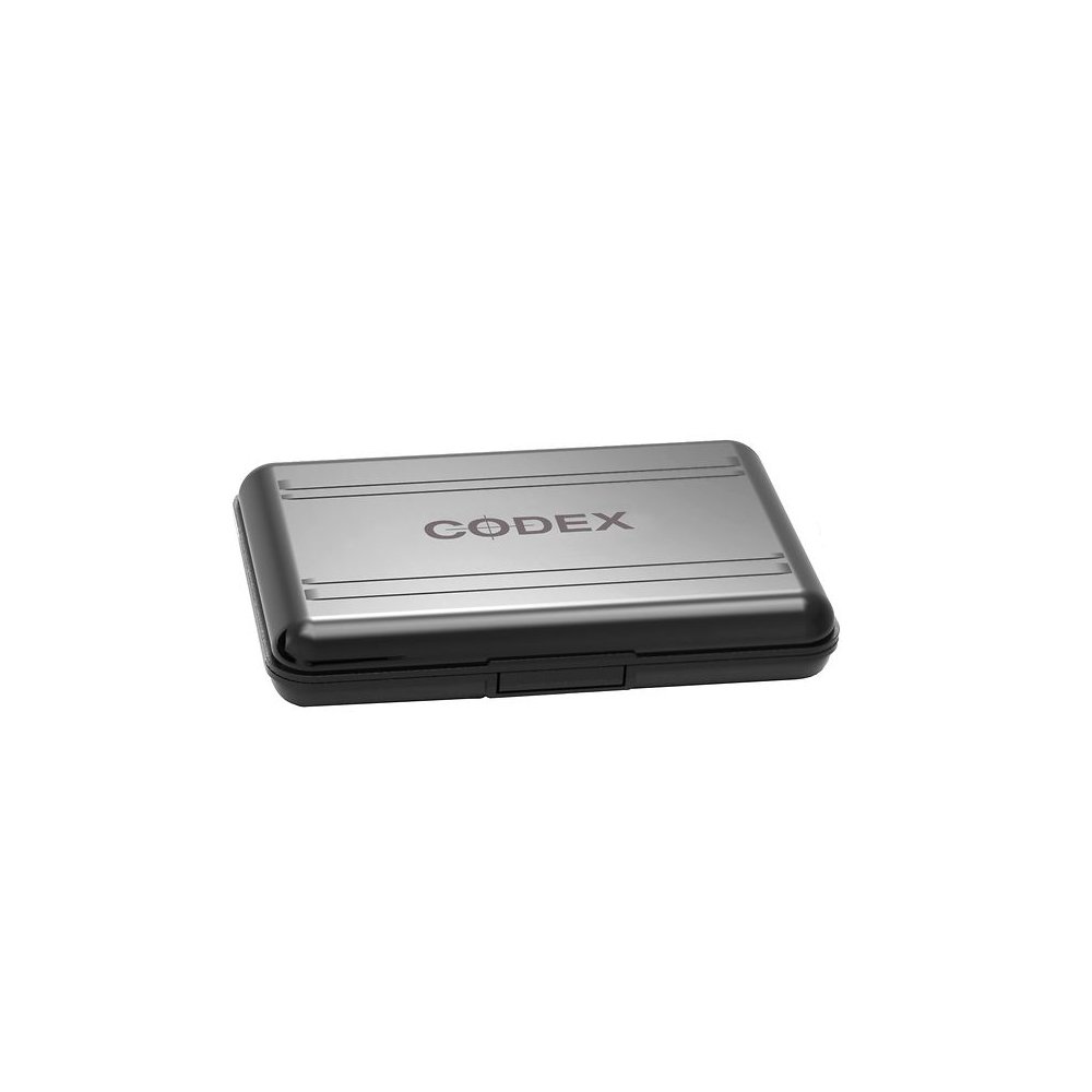 Codex Compact Drives are shipped in a lightweight case to protect them from mechanical damage, dirt, dust, or spray water. If a case took damage (e.g. hinges torn, fastener broken or shells bent out of shape) it should be replaced. This spare case is the same as the one shipping with the Compact Drive. It is made from a lightweight metal shell, a plastic frame, and a foam insert.