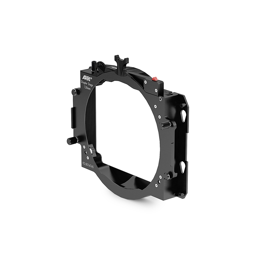 The ARRI diopter stage can be used at the back of a 4 inch x 5.65 inch clip-on a matte box, or independently with a rear-mounted clamp adapter. Diopters up to +3 can be fitted, and the position of split diopters can be adjusted with an integrated friction wheel. As with the diopter frame, a safety device and ¼” mounting threads are included. Compatible with LMB 4×5, LMB-25, LMB-15 and LMB-5.