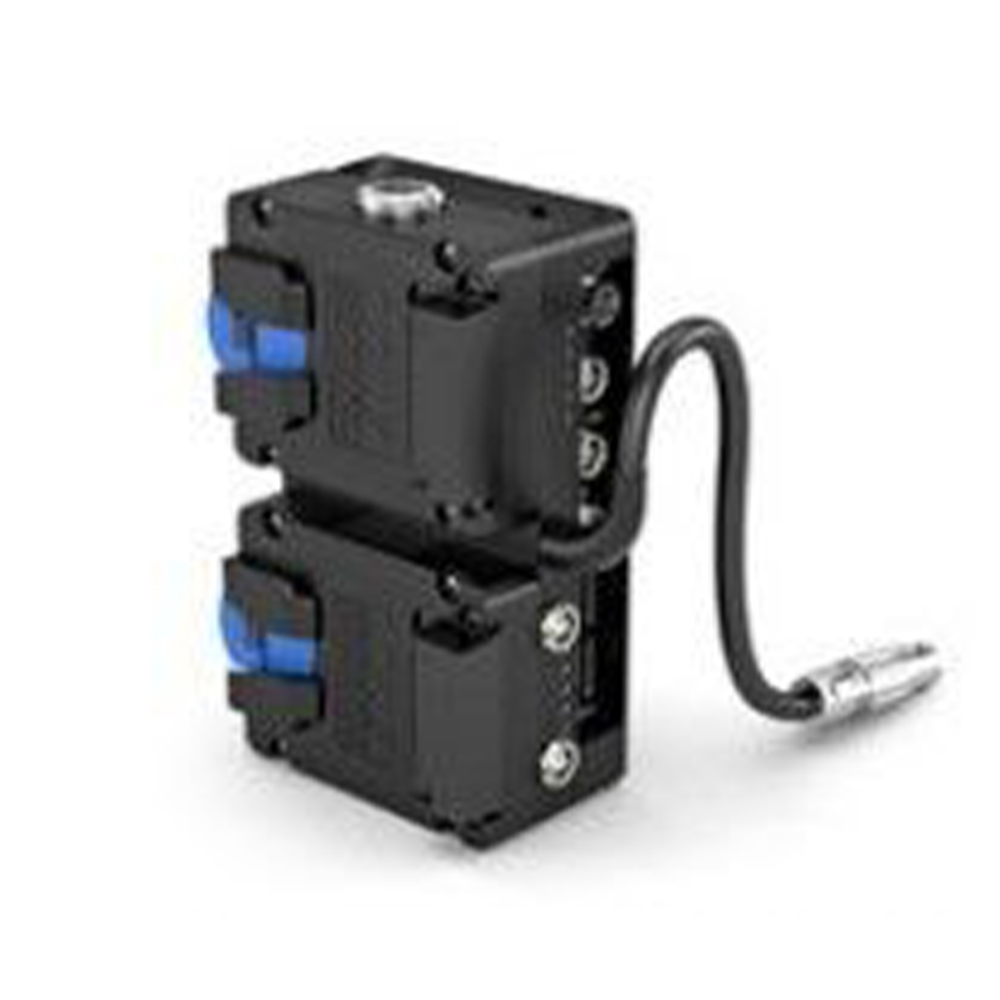 The Power Splitting box Provides hot-swap between two Micro V-Mount Batteries. The device features various industry standard accessory power connectors, as well as a 8-pin Lemo connector for battery input aimed at cables such the ARRI KC-50. A console can be attached to mount the Splitting box to standard 15mm LWS rods. Fits ALEXA Mini / Mini LF.