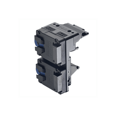 This rainproof socket allows you to plug a D-Tap connector into the battery with free choice of cable trailing from the left or right.