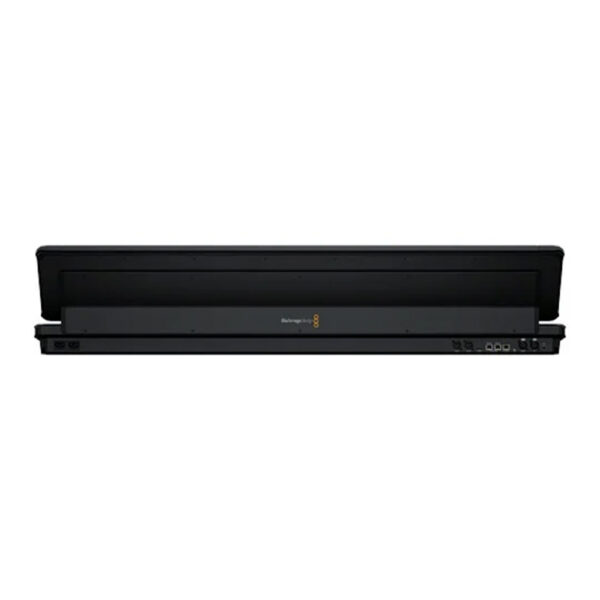 Desktop panel with 10 motorized faders, a large touchscreen display, controls for layers, bus, matrix, aux, VCA, sub-masters, talkback and more. Fully integrated with Fairlight Live.