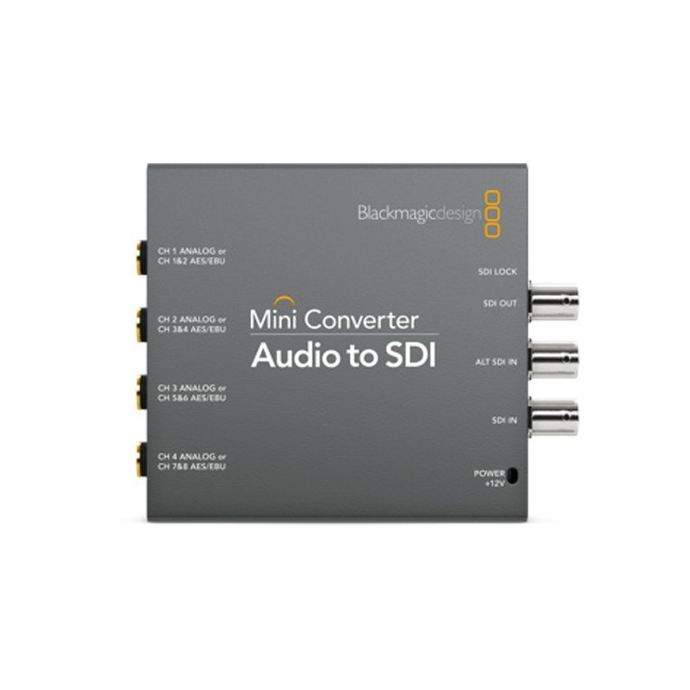 Embed audio into any SDI source in SD and HD formats up to 1080p60! Audio is input as balanced analog or AES/EBU using ¼ inch connectors from equipment such as mixers and analog decks. Mini Converter Audio to SDI is the ideal SD/HD SDI audio embedder for when you don’t need the cost of the Ultra HD model!