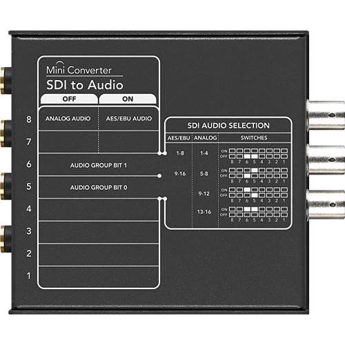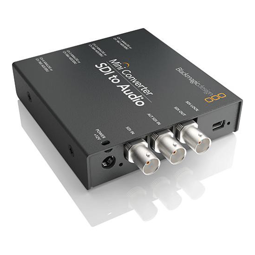 Blackmagic Mini Converter – SDI to Audio includes everything you need to de-embed 4 channels of analog audio or 8 channels of AES/EBU digital audio from any SDI video connection. Now you can easily access the audio in any SDI video connection for output to audio equipment such as audio mixers, analog broadcast decks, audio monitors, and more!