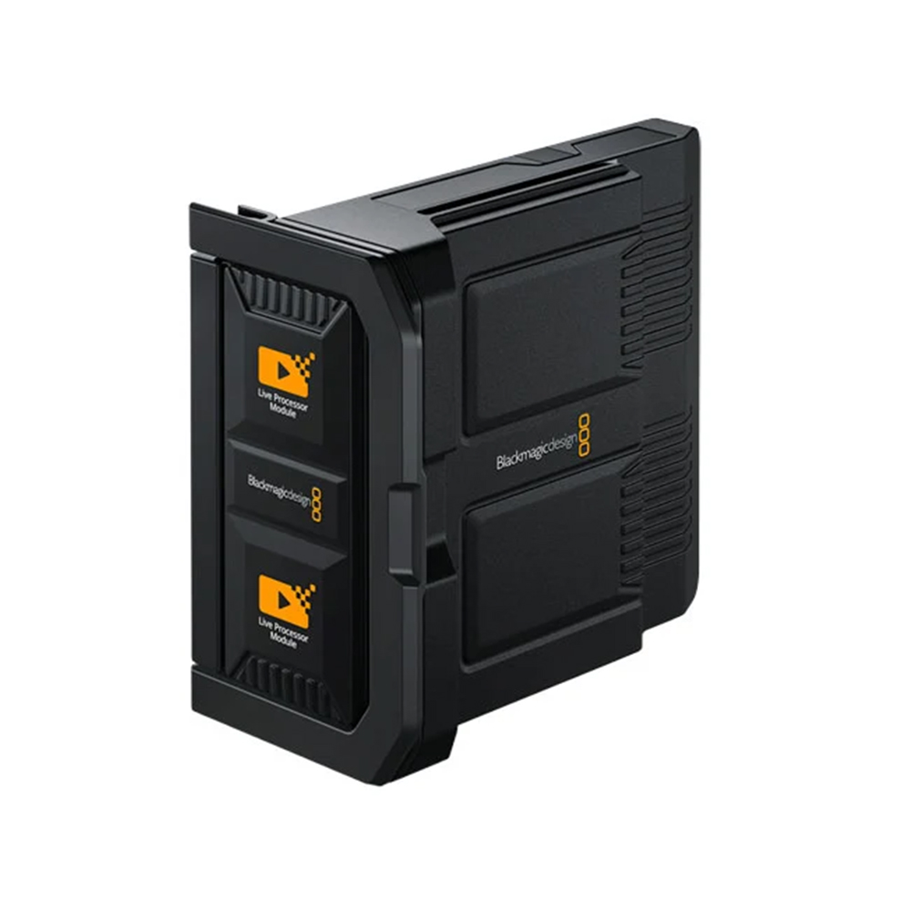Blackmagic Design URSA Live Encoder (CINEURSAAF24DS/LIVE) processing module allows Blackmagic URSA Cine Immersive 100G model to be used for live production. Encodes live video into ProRes for output as SMPTE-2110 IP video on the 100G Ethernet output port.The Blackmagic URSA Live Encoder enables the Blackmagic URSA Cine Immersive 100G to be used for live immersive production. It encodes live video into ProRes for output as SMPTE-2110 IP video via the high-speed 100G Ethernet port, creating an entirely new live immersive viewing experience. Plus, the camera data rate is under 50 Gb/s, so customers can combine two cameras into a single 100G Ethernet connection.