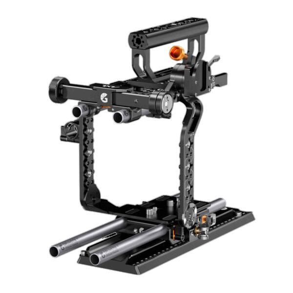 Each expert kit comes with the sliding top plate, side plates, split riser 15mm LWS basepalte, sliding top handle, Axl EVF mount, a pair of 4″ & 12″ Drumstix 15mm rods, ARRI 300mm balance plate and a 19mm 3/8″ Anti-Twist rod mount.