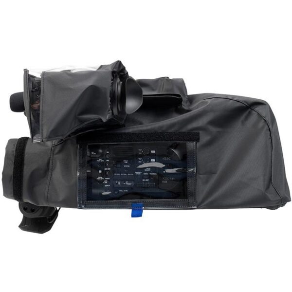 The rain cover is designed specifically for the Sony PXWFS7 camera. The near silent fabric minimalizes unwanted sound effects caused by wind and rain and reduces the chance of the camera overheating by allowing hot air to escape via the breathing material which the cover is made of.