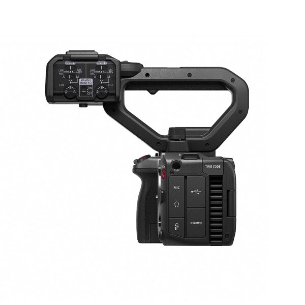 | Audio In | 2x XLR 3-pin jack (Handle Unit) 1x 3.5 mm stereo mini jack Built in Stereo microphones on camera body |