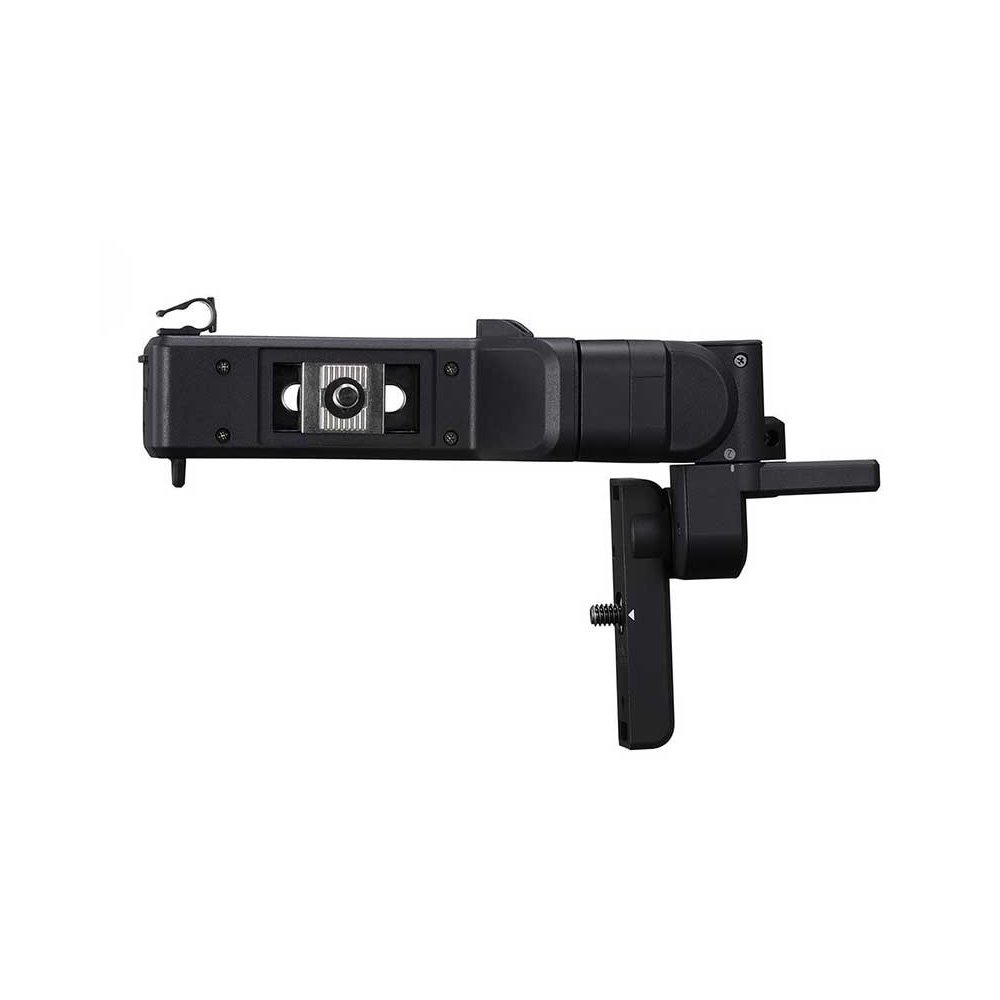 The Canon LA-V2 LCD Attachment Unit is a 3-hinge mount that attaches the optional LM-V2 LCD monitor to your C500 Mark II. It provides three articulation points to position the LM-V2 as you see fit while shooting.