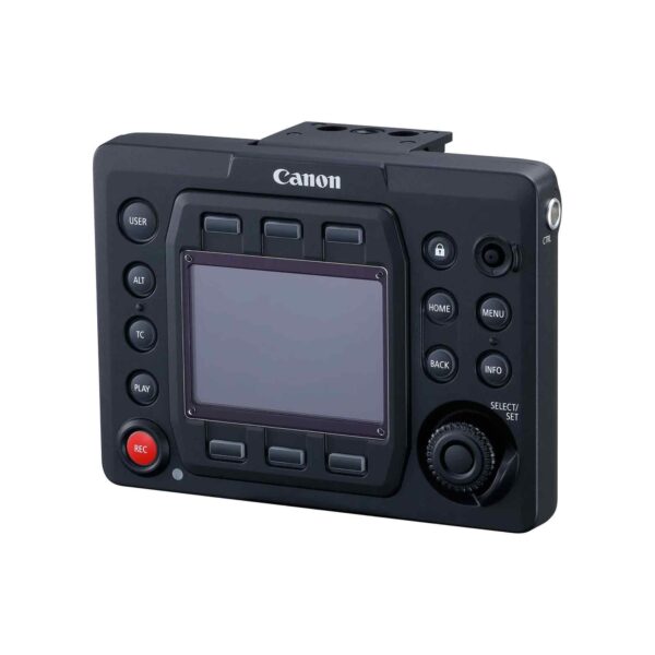 The OU-700 Remote Operation Unit for C700 from Canon provides a control surface for accessing camera settings as well as triggering record start/stop. The unit can be mounted directly to the right side of the camera or used remotely by employing a separately available extension cable. It is ideal for scenarios where several crew members need access to the camera, allowing the camera assistant to stay out of the way so the focus puller and operator can do their jobs unobstructed.