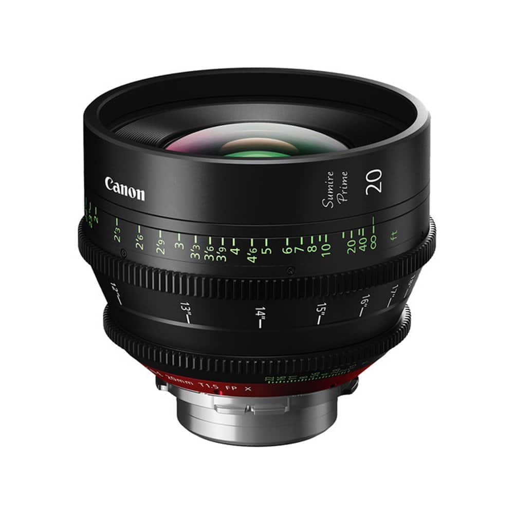 The Canon 20mm Sumire Prime T1.5 is a manual focus prime lens that covers full frame and Super 35 sensor formats providing center-to-edge resolution that supports 4K production. It features a PL mount and has focus scales marked in feet. The Sumire lens series is designed with the goal of creating pleasing facial close-ups across all ages, genders, and ethnicities. This effect is increased as the lens approaches its widest aperture. The 20mm offers a maximum T-stop of 1.5 and has an 11-blade iris that provides round natural-looking, out-of-focus highlights for a pleasing bokeh. The lens barrel features 300° smooth rotation from close focus to infinity, giving you a high degree of precision and consistent focus.