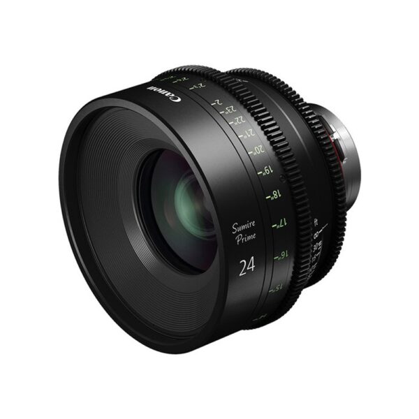 The Canon 24mm Sumire Prime T1.5 is a manual focus prime lens that covers full frame and Super 35 sensor formats providing center-to-edge resolution that supports 4K production. It features a PL mount and has focus scales marked in feet. The Sumire lens series is designed with the goal of creating pleasing facial close-ups across all ages, genders, and ethnicities. This effect is increased as the lens approaches its widest aperture. The 24mm offers a maximum T-stop of 1.5 and has an 11-blade iris that provides round natural-looking, out-of-focus highlights for a pleasing bokeh. The lens barrel features 300° smooth rotation from close focus to infinity, giving you a high degree of precision and consistent focus.