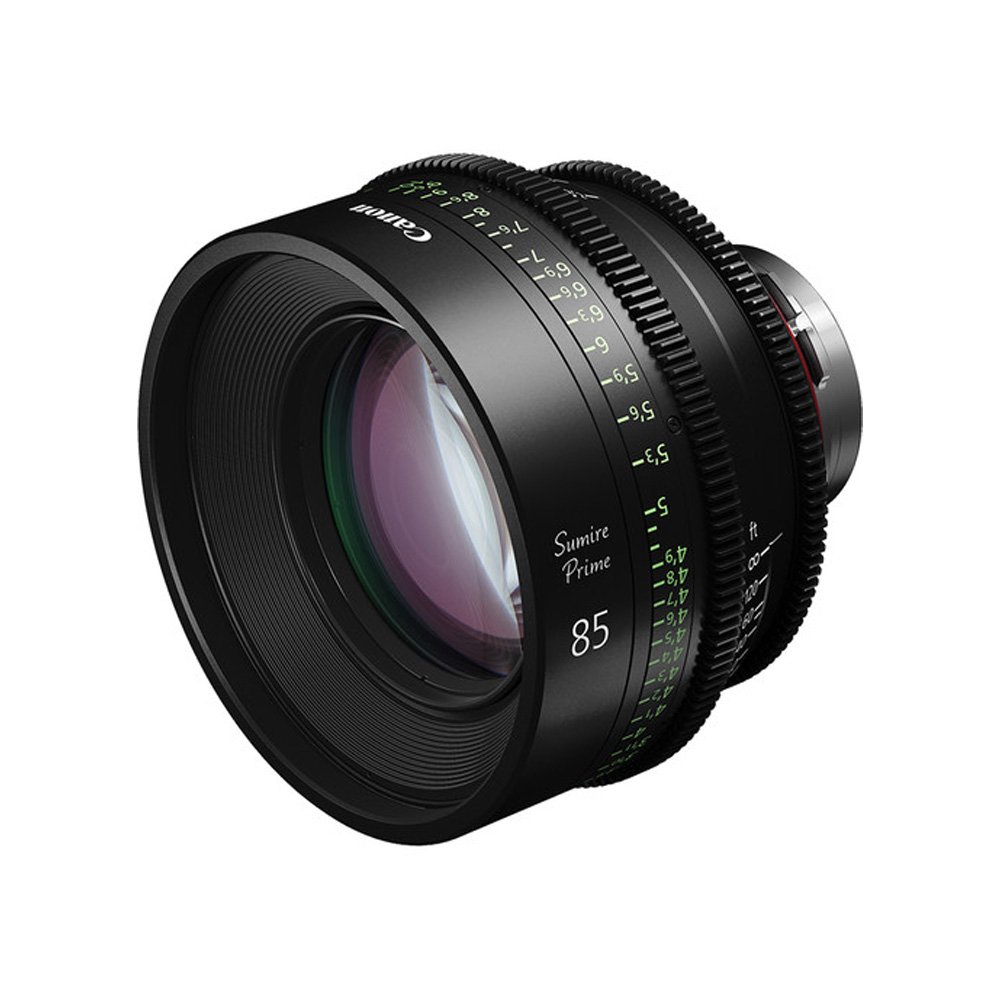 The Canon 85mm Sumire Prime T1.3 is a manual focus prime lens that covers full frame and Super 35 sensor formats providing center-to-edge resolution that supports 4K production. It features a PL mount and has focus scales marked in feet. The Sumire lens series is designed with the goal of creating pleasing facial close-ups across all ages, genders, and ethnicities. This effect is increased as the lens approaches its widest aperture. The 85mm offers a maximum T-stop of 1.3 and has an 11-blade iris that provides round natural-looking, out-of-focus highlights for a pleasing bokeh. The lens barrel features 300° smooth rotation from close focus to infinity, giving you a high degree of precision and consistent focus.