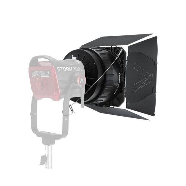 Aputure CF10 Fresnel and Barn Doors Kit (6977162456416) is a 10-inch Bowens mount fresnel with included 8-leaf barn doors. It offers a beam range of 15º to 40º and is designed to be up to three times brighter than previous LED and Fresnel pairings while maintaining a compact profile. The dual-expanding focusing system with multiple lens elements drastically reduces size and weight without compromising optical performance. The barn doors can hold an 11″ scrim. The compact design is optimized for use with the STORM 700x, and is compatible with the STORM 400x, and the Light Storm 600c Pro and Pro II.
