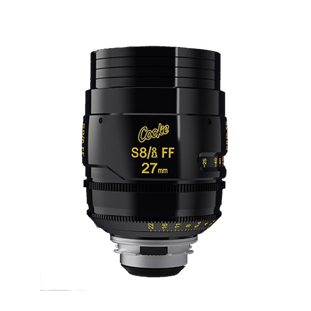 Cooke S8/i FF 27mm Cine Lens. The S8/i are cutting-edge, state-of-the-art high-speed full frame lenses designed by cinematographers’ feedback to create more realistic and film-like images with spherical lenses for digital motion capture.