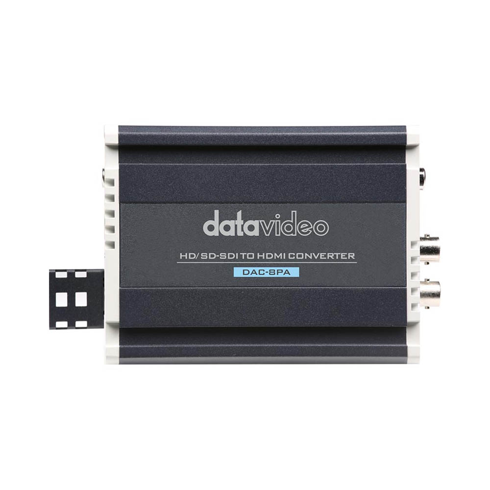 DataVideo DAC-8PA SDI to HDMI Converter (DATA-DAC8PA) allows you to convert an SDI signal (up to 1080p60) to HDMI. It includes the option to de-beded audio from a stereo RCA connection, or can be used in both HDMI output and analogue audio output.