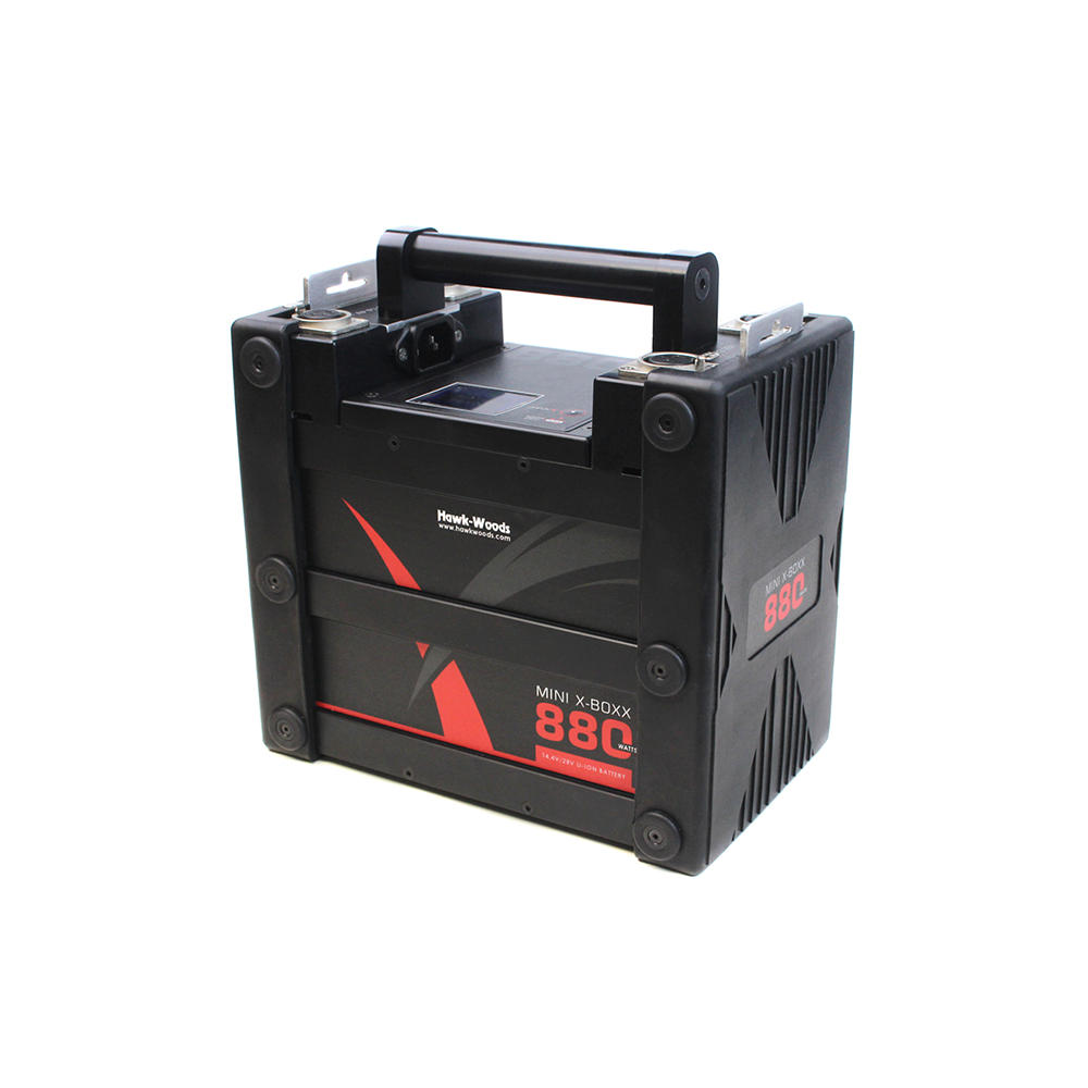 Hawk-Woods Mini X-Boxx Floor Battery & Charger (MXB880). The next step in mini power has arrived in the shape of a mini X-Boxx floor battery. Hawk-Woods X-Boxx brand has a long-established history of delivering power for demanding equipment such as professional film cameras or lighting applications. The X-boxx range has stood up over the years, proving to be robust and long-serving to its users!