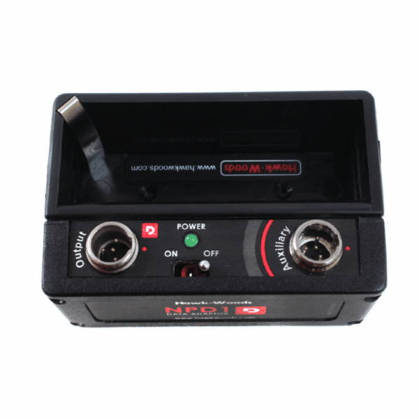 NP1 Adaptor (DATA) shoe – 2x TA4 + master switch (NPD1). NP1 shoe for power out to the distribution box NPD-8S, offers 2x TA4 (mini-xlr) chassis mounted outputs. Using these connectors will allow you to draw more power from the 8-way distro box, meaning you can use each output on the distro without being limited to low current limitations of the Hirose.