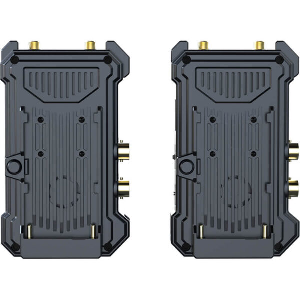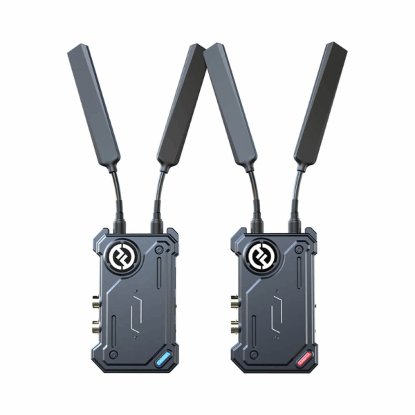Hollyland Cosmo C1 (V9620) uses the latest coding, decoding technology, and 5G wireless transmission technology. It can achieve ultra-low latency wireless video transmission. It has a transmission range of over 1,000ft with a clean line of sight (LOS) when the transmitter is connected to 1 receiver. And, both transmitter and receiver are equipped with L-series battery plates and can also be powered by a USB Type-C port and DC power input.