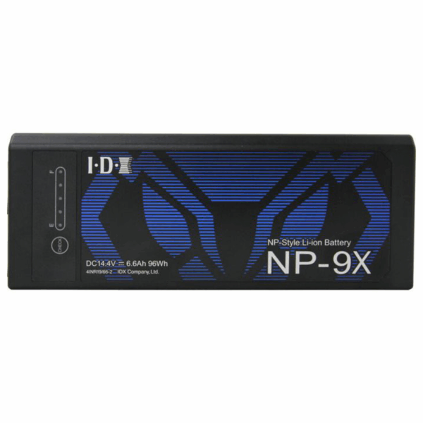 NP-9X is the successor of the NP-L7S, the industry standard NP-style battery for powering audio equipment. It now features more capacity at 96Wh, two D-Tap outputs for powering additional accessories, and also a 5 LED power indicator to display remaining capacity in 10% increments. One of the D-Tap port is a D-Tap Advanced, which can also be used to charge the battery with the IDX VL-DT1 D-Tap charger. NP-9X is still compatible with all current accessories and chargers like the JL-2PLUS.