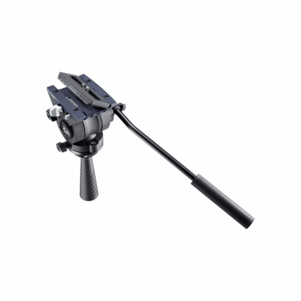 The TH-X Head from Libec is capable of supporting cameras weighing up to 9 lb. It includes a sliding quick-release plate and features a 1/4″-20 screw for camera attachment. The drag and counterbalance are fixed, and both the pan and tilt can be locked. Rosettes on either side of the head can hold the pan bar for right and left-handed operators. It comes with a dual attachment base that can fit either in a standard 65mm bowl tripod or on flat-mount accessories such as sliders, jibs, and more with a 3/8″-16