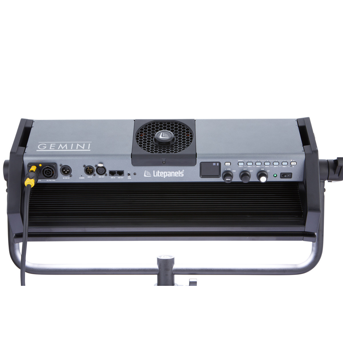 Creative control is quick and easy from the onboard control panel, whether you’re on set or on location. For remote control, choose from wired RJ45 or XLR5 DMX options, or switch to wireless DMX (LumenRadio) or Bluetooth paired with Litepanels SmartLite Director iOS app for a world of light, effects and colour at your fingertips._Litepanels SmartLite Director appNext generation smart lighting control. The Litepanels SmartLite Director app allows intuitive adjustment of the colour and intensity of multiple connected Gemini lights. Use the camera on an iPad or iPhone to quickly evaluate the ambient light in a scene and match the colour temperature for dynamic setups.