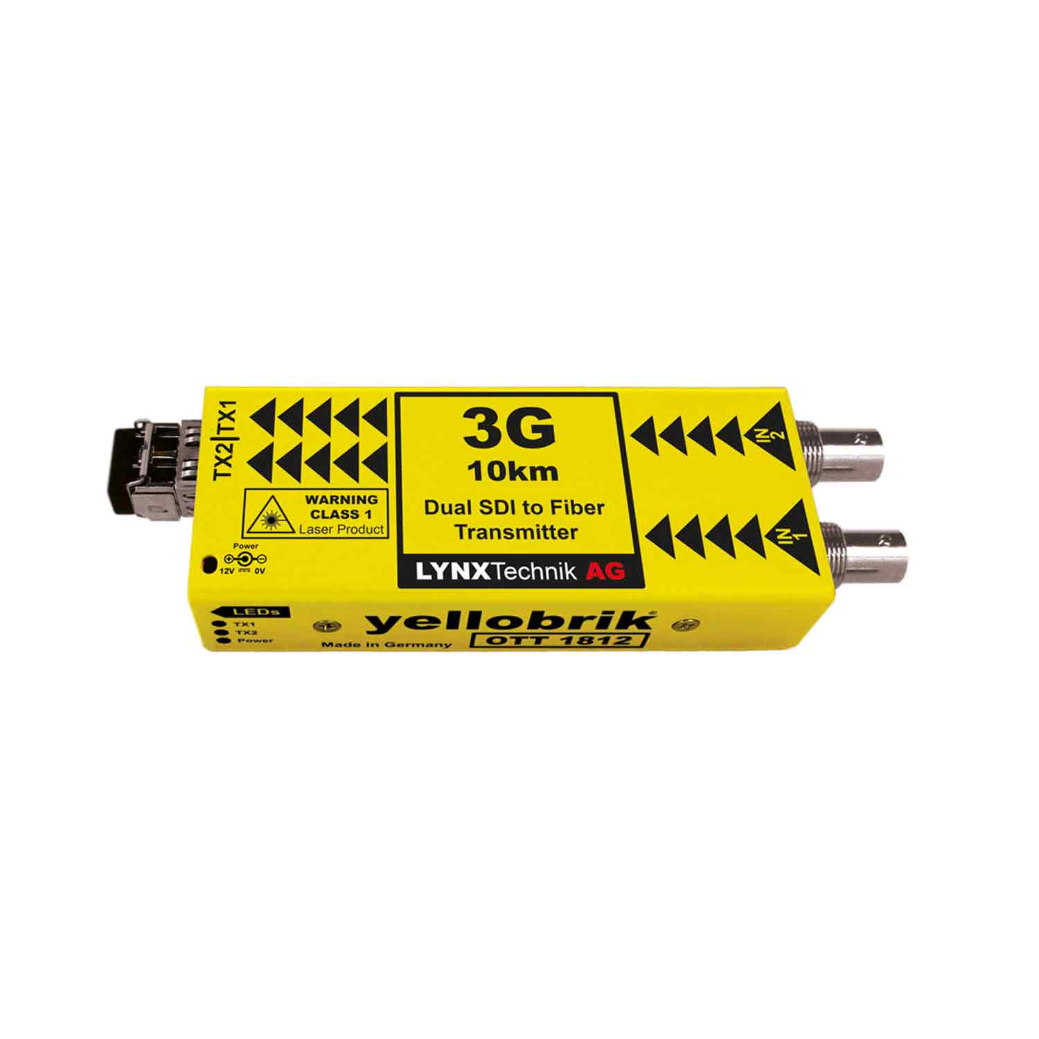 Lynx Technik Yellobrik OTT 1812 / Dual 3GBit SDI to Fiber Optic Transmitter – 10km (OTT 1812-1) is a compact dual channel SDI to fiber optic transmitter designed to combat the restrictions involved with the distribution of uncompressed broadcast quality video signals over long distances.