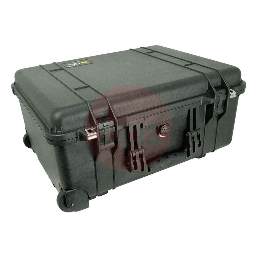 The Pelican 1560 Case (Black) is a durable, watertight, airtight, dust-proof, chemical-resistant and corrosion-proof hard case used to carry any kind of equipment that needs to be protected from the elements. It is made of ultra-high impact structural copolymer that makes it extremely strong and durable. It has a 0.25″ (6.4 mm) neoprene o-ring, two easy-open double throw latches that seal perfectly. It has a built-in, automatic pressure equalization valve for changes in altitude or temperature. The case uses stainless steel hardware and has padlock protectors to provide added strength and extra security against cutting and theft. It is carried by a comfortable rubber over-molded top and side handles, retractable pull extension handle and built-in wheels.