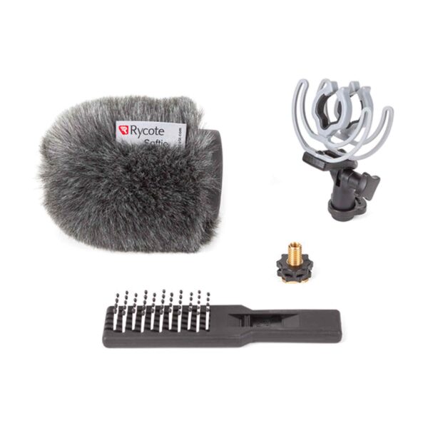 Designed for the Sanken CS-M1 microphone, the Rycote Softie Kit for Sanken CS-M1 Microphone with Windshield and Shockmount is a windshield and shockmount system offering reduction of wind and handling noise for videographers, sound recordists, and more. It includes a Classic Softie slip-on windshield, an InVision INV-6 heavy shockmount, a shoe adapter, a brush, and a Rycote sticker. Both compact and lightweight, the Softie Kit is well suited to boompole or camera-mounted applications. The supplied shoe adapter enables attachment of the Softie Kit to your camera’s hot or cold shoe. The acoustically transparent Softie Kit also protects your mic from dust and dirt.