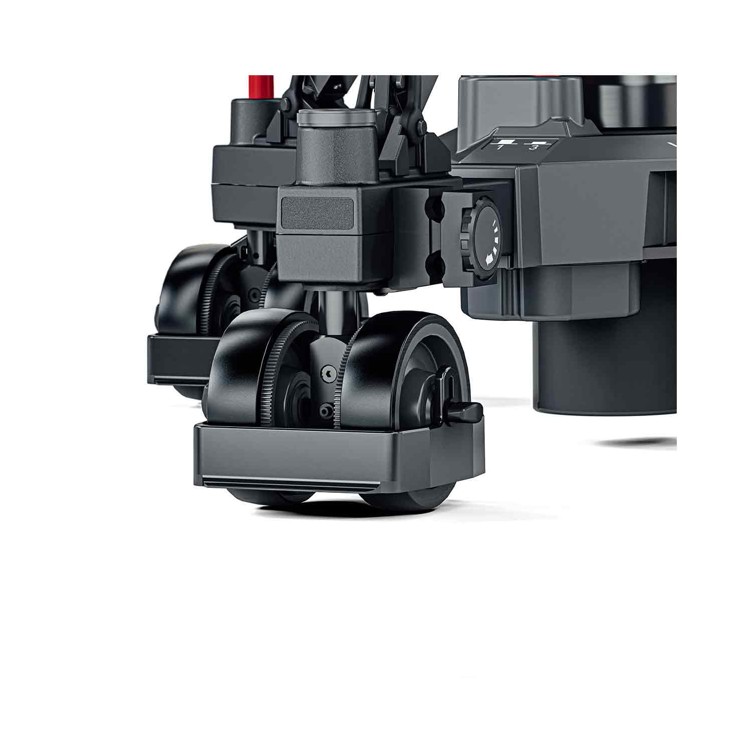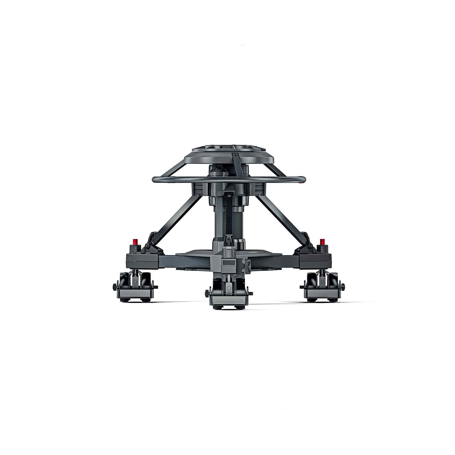 Highly stable and yet lightweight, the Vario pedestals provide optimum support both in Studio and OB environments. The functions of the Vario Ped 2-80 are perfectly matched to the requirements of Studio and OB daily life as it is a robust, reliable and protable solution that provides soft and precise movement delivering unparraled talent tracking and able to achieve seated and standing eyeline positions even at close range. It is a 2-stage pedestal for large payloads up to 80 kg / 176 lb in Studio and OB environment. Its smooth and precise on-air movement and on shot stroke length of 77cm / 30.3 in is perfect for following talent moving from seated to standing postion ‘on shot’. It has an inlet valve for any air source and a pressure gauge for clear and reliable set-up. The detachable skid allows the pedestal to be simply broken down into two sections for easy storage and transportation. The Vario Ped 2-80 has crab and steer functionality, allowing working in tight spaces and on shot direction changes. It comes with 12.5 cm / 5 inch wheels and adjustable cable guards. The skid has an easy to adjust position for narrow clearance. The steering wheel has easily accessible slots for trim weights, which can be used to quickly adjust the column pressure if the temperature changes during the shot.