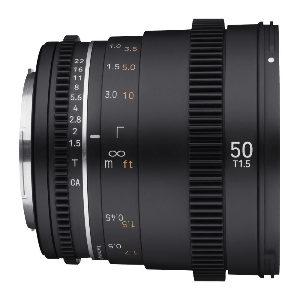 The Samyang VDSLR 50mm T1.5 MK2 is a compact, high quality, fast prime cine lens, available in several mounts. It has full-frame coverage and is optimised for use on video, DSLR and mirrorless cameras.