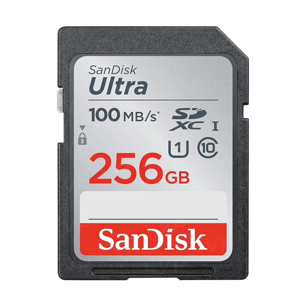 With SanDisk Ultra UHS-I cards you will benefit from faster downloads, high capacity, and better performance to capture and store 256GB of high-quality pictures and Full HD video. Take advantage of ultra-fast read speeds of up to 100MB/s to save time moving photos and videos from the card to your computer. SanDisk Ultra UHS-I cards are waterproof, temperature proof, X-ray proof, and shockproof.