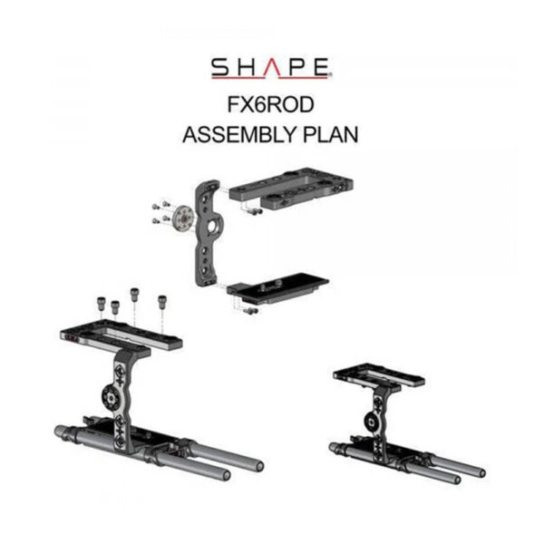 Shape Cage and Rod Bloc System for Sony FX6 (FX6ROD) allows you to add accessories and handheld functionality to your Sony FX6 camera. It includes a form-fitting side plate with an Arri rosette, a top plate and the adaptor plate connecting with the side post to protect your camera. The kit features several 1/4-20 and 3/8-16 threaded holes with anti-rotating holes.