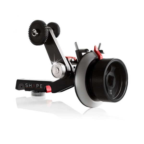 The SHAPE engineering team is internationally renowned for creating one of the most robust motion picture accessories ever built. It mounts on 15 mm rods and features an adjustable arm which puts the gear at the optimal position for the lens, no matter what the diameter is. Two 0.8 pitch gears come included and give you a choice of either 28 teeth or 43 teeth, depending on the throw distance of the lens. Additional features include two adjustable hard stops, removable marking disc, and an industry standard accessory port for using optional whips and cranks.