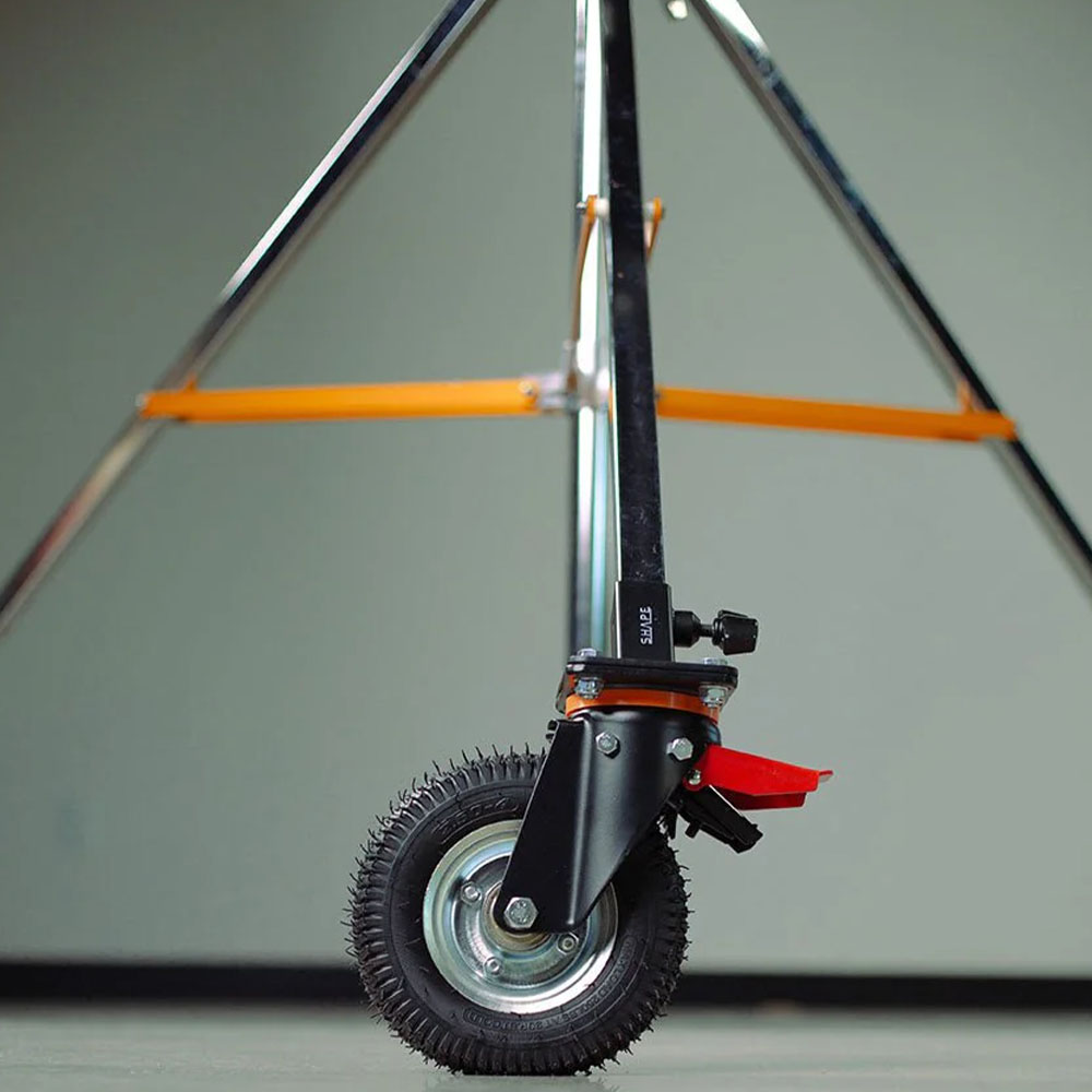 Shape Montreal Big Wheels for 1 1/4” Square Legs are robust light stand wheels engineered to enhance mobility. Compatible with 1 1/4 inch (31.7 mm) width light stand legs, including Matthews Mombo Combo light stand types, and other major brands, these wheels feature inflatable pneumatic tires for rugged terrain, boasting an 8’’ (203 mm) diameter for smooth movement. With a 360° adjustable swivel, precise positioning is effortless, while a sturdy brake system ensures safety by securely locking the light stand in place.