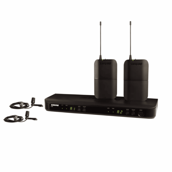 Shure Wireless Dual Presenter System with two CVL Lavalier Microphones (BLX188/CVL). The entry to Shure quality lavalier microphones in a dual system for spoken word applications. Features analogue wireless transmission.