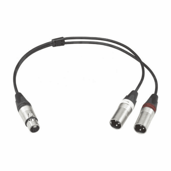 Sony EC-0.5X5F3M Microphone Cable (EC-0.5X5F3M) is used to connect the Sony ECM-680S stereo shotgun microphone into the dual XLR inputs on camcorders. The cable measures 16″ (40.64cm) in length and features a 5-pin XLR input on the single end, and dual XLR male outputs.