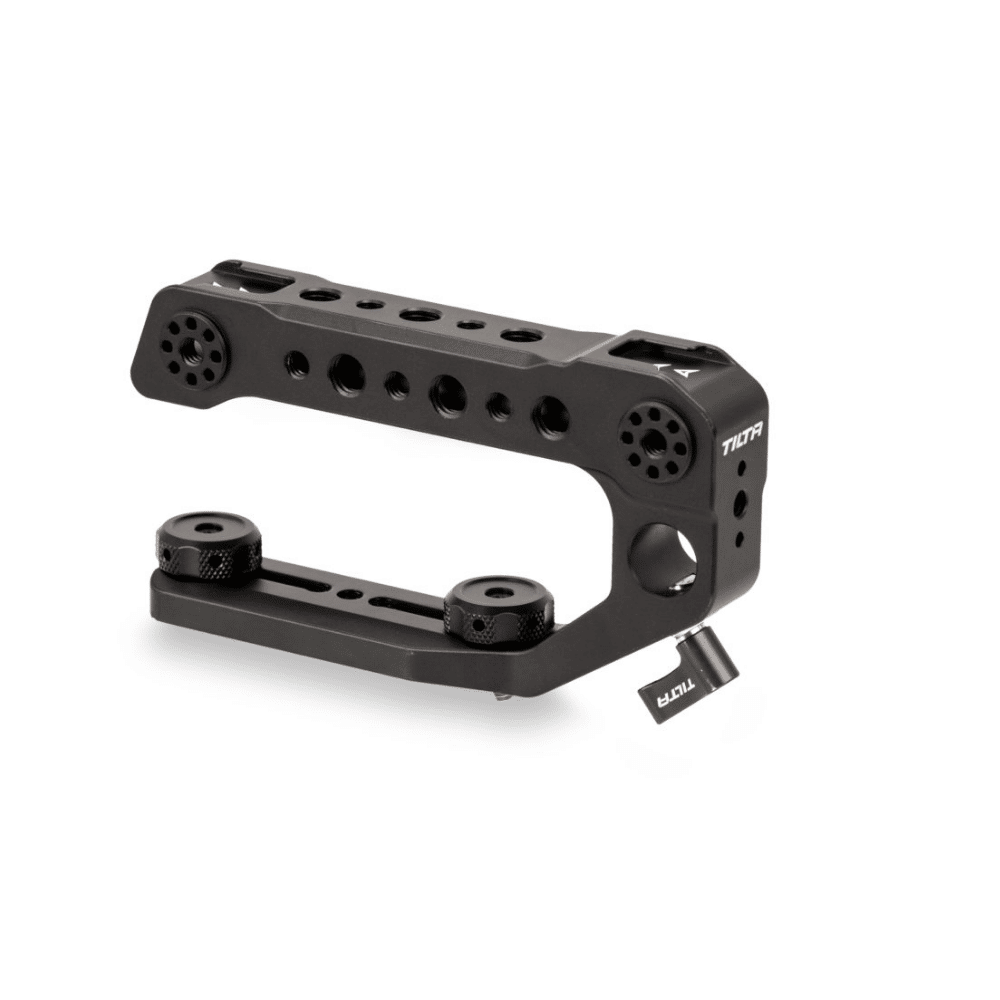 Tilta Top Handle for FX6 (ES-T20-TH). This Top Handle for Sony FX6 replaces the Original Fx6 Top Handle and can be adjusted forward and backwards for balance. This Handle also includes a monitor mount for the FX6’s LCD Monitor Bracket and a 15mm Rod Mount for an EVF.