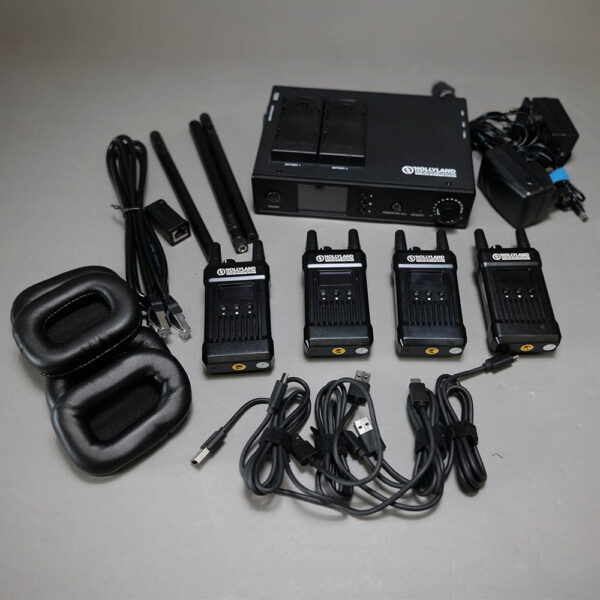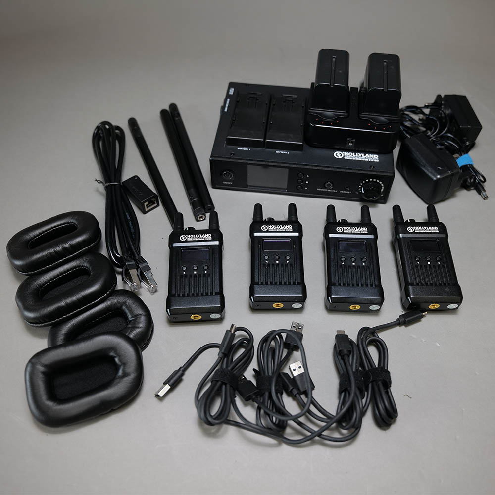 Used Hollyland Mars T1000 Full Duplex Wireless Intercom System carton (U/T1000) is ideal for broadcasting, training, meetings, and more. This full-duplex intercom system with four beltpack transceivers allows two-way communication at a range of up to 1,000ft (300m). It includes a base station, four beltpack transceivers, and five headsets. The base station powers from an included AC power adapter with a 4-pin XLR connector or from optional L-series batteries via the dual-battery plate built into the top of the base station.