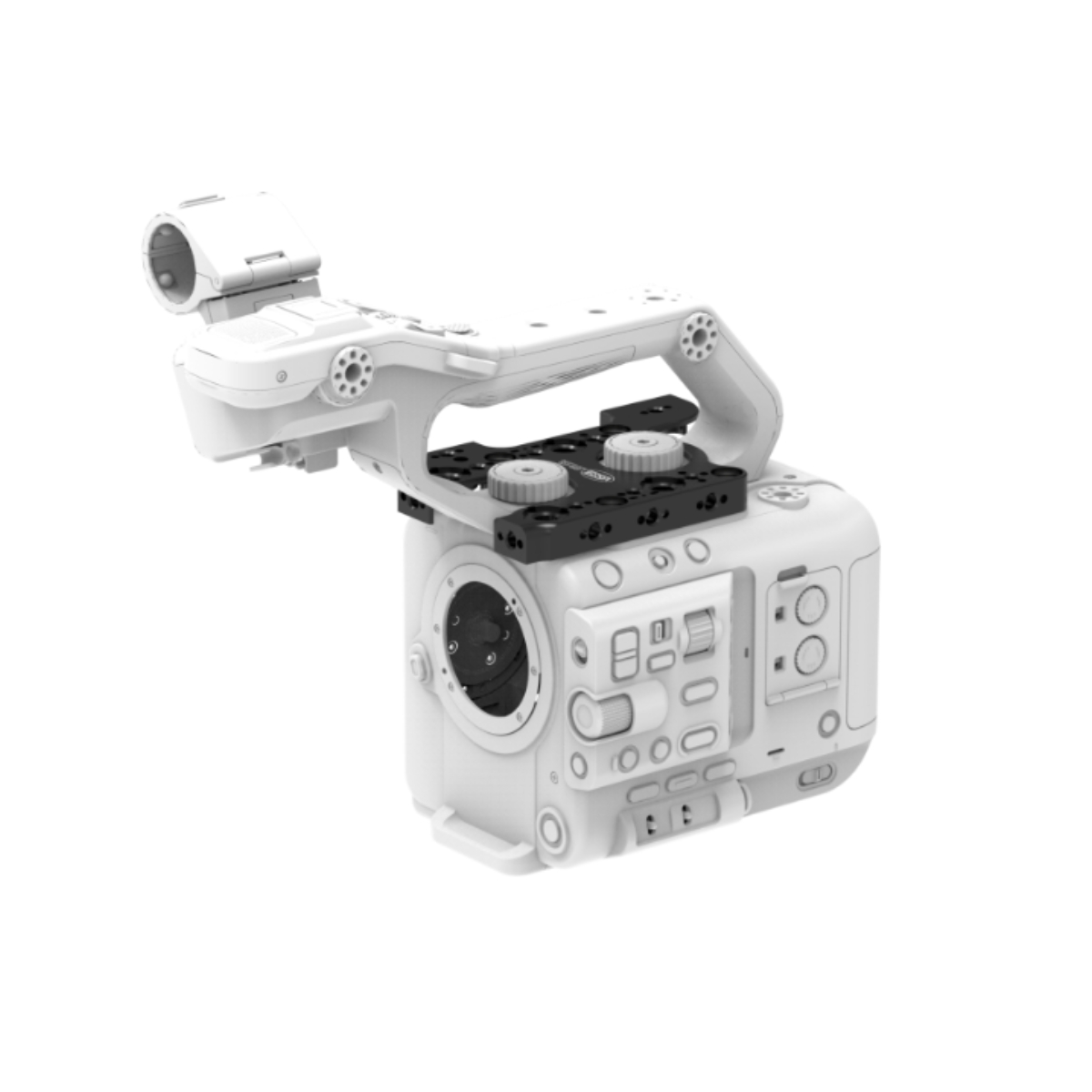 This cheese plate is specifically designed for the Sony FX6 and can be used in combination with or without the original top handgrip of the Sony FX6.