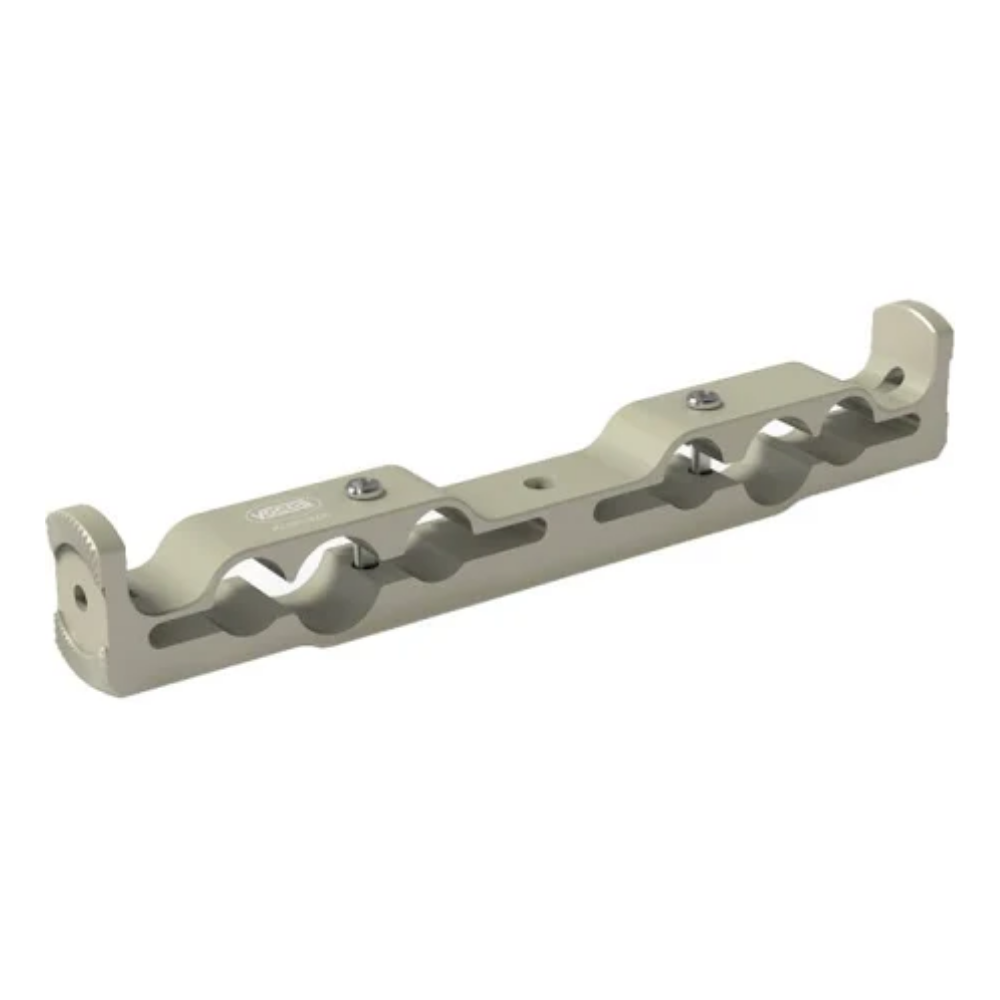 Vocas Handgrip Combi Bracket (0390-0006). Handgrip combi rail bracket, for use on 15 mm LWS, 15 mm studio and 19 mm rail support systems. Both sides of the combi rail bracket are equiped with standard rosettes, for mounting handgrips, handgrip extenders or other standard rosette accessories.