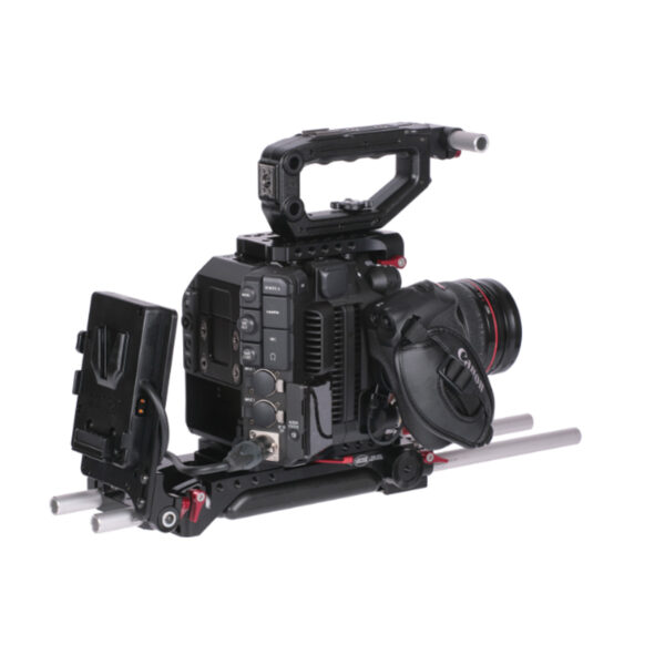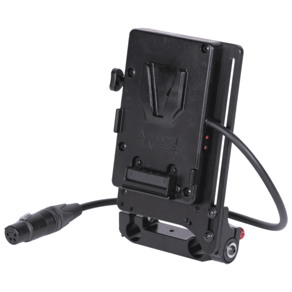 The V-lock mount plate has a 10A fuse and 1x unregulated D-Tap. The lenght of the power cable is 35 cm. The kit excists of a V-lock mount plate (0370-0170) which is mounted on the tilting battery adapter plate for 15 mm rails (0370-0110), to provide a complete V-lock powering solution on 15 mm rails. An optional 19 mm adapter (0460-0650) is available to mount the tilting battery plate on 19 mm rails.