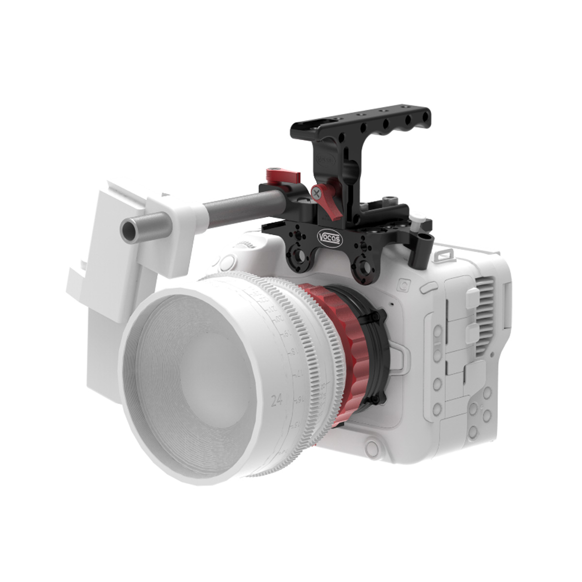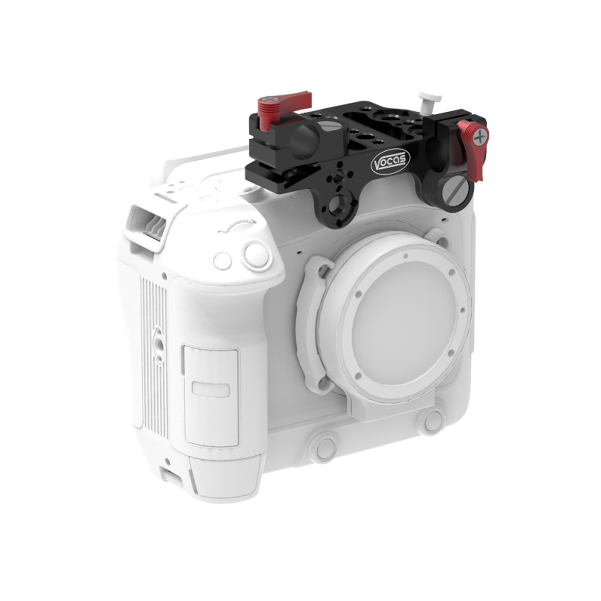 Vocas top handgrip kit for Canon EOS C70 (0350-1195). This Vocas accessory plate kit attaches directly to the top of the Canon EOS C70 camera offering a stable platform for using multiple accessories.