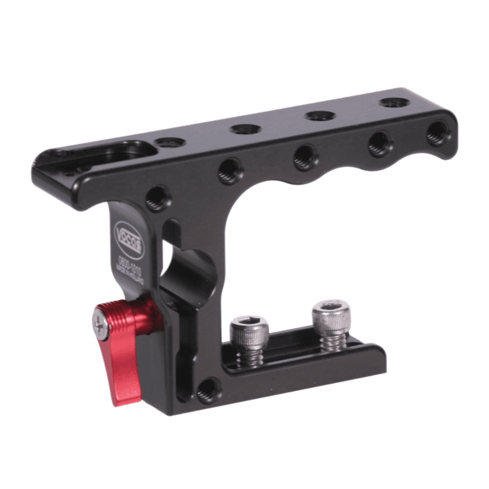 Vocas Top handgrip Mini (0600-1010). Top handgrip Mini with integrated 15 mm viewfinder adapter and cold shoe attachment.