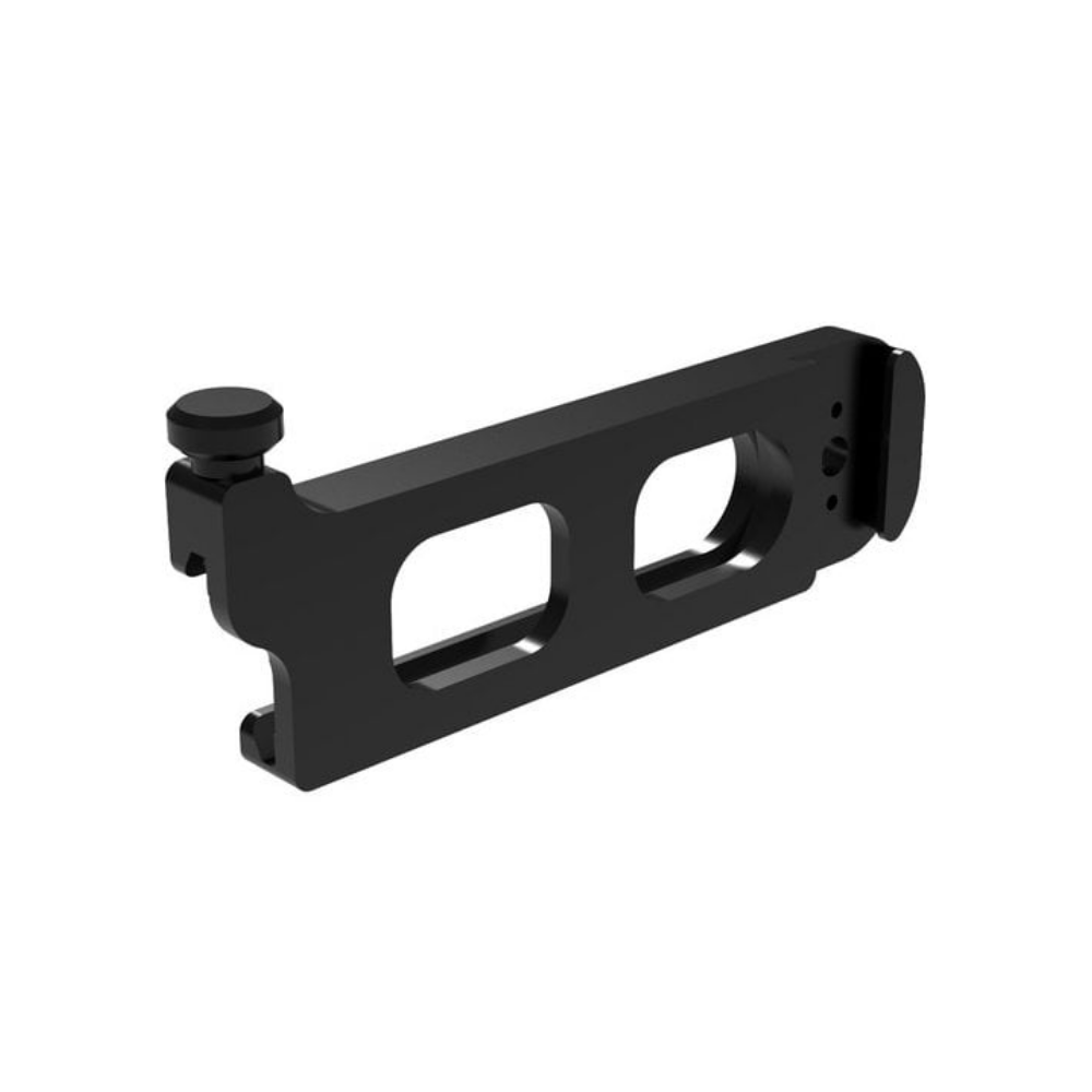 Vocas Viewfinder extender (0350-1490). This viewfinder extender fits the Sony viewfinder adapter (0350-1450) and is compatible with the Vocas top handgrips. The original Canon monitor can be positioned more to the side of the left side of the camera. This Sony viewfinder adapter can be mounted on either side of the Vocas top handgrip (0350-1400) and allows the use of standard Sony viewfinder systems.