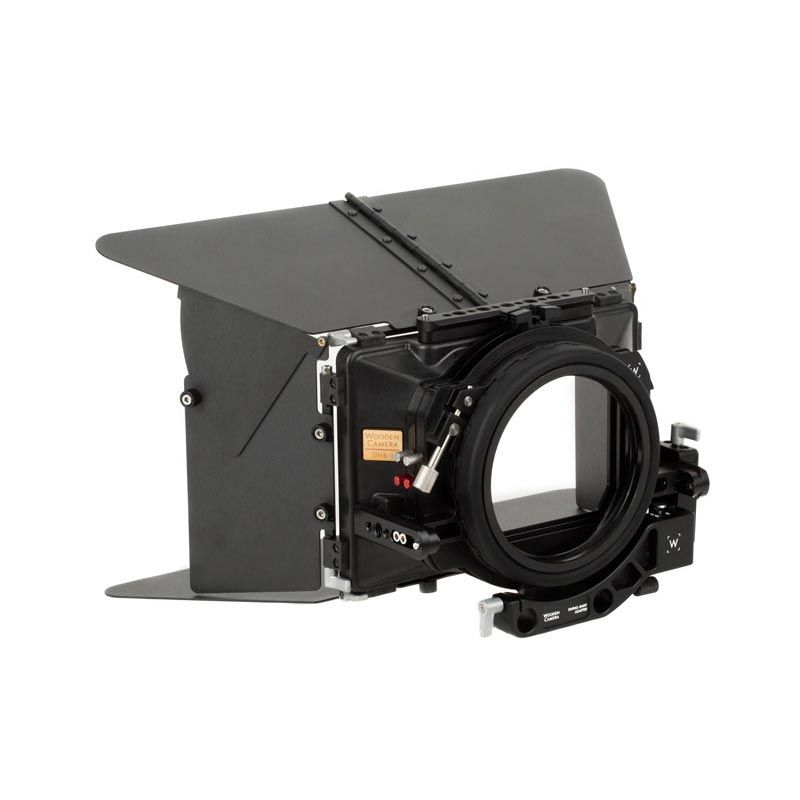 Wooden Camera UMB-1 Mattebox (Pro) (202100) is natively 15mm LW rod based and comes standard with two rotating 4×5.65 filter stages (with an optional third stage available), individual tray catchers, folding French flag, 143mm native diameter opening, NATO standard accessory rails on left, right, and top for attaching accessories, ARRI style rubber bellows with 114mm standard opening, a complete set of bellows reduction rings, a universal cloth donut for non-standard lens diameters, a height-adjustable swing-away bracket, left and right side flags, bottom flag, and a full set of clamp-on adapter rings. The UMB-1 is designed to quickly transition from swing away, to clamp on, to ultralight when using a stabilizer.